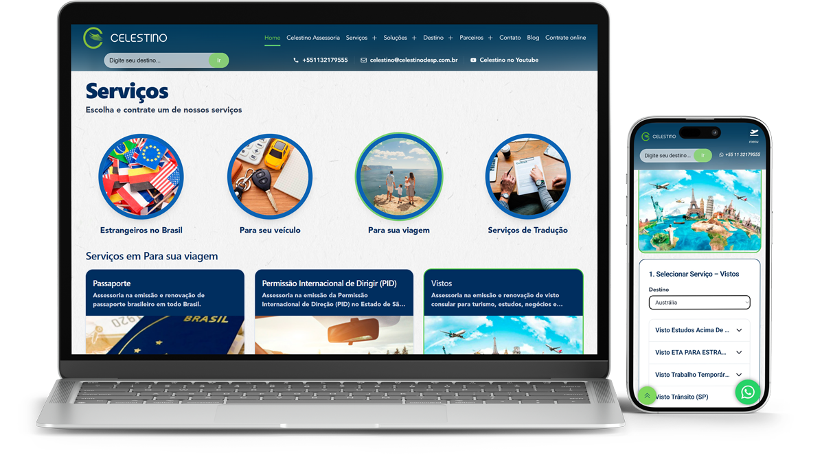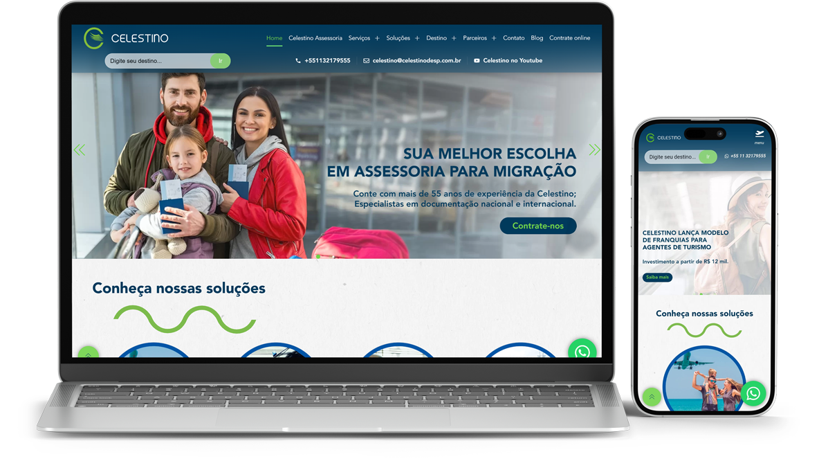 O novo site da Celestino materializa o reposicionamento estratégico da marca, unindo a solidez de uma trajetória iniciada em 1992 a uma interface moderna e vibrante. A nova plataforma foi projetada para refletir a expertise de uma empresa que já viabilizou 1,2 milhão de documentos e superou a marca de 200 mil vistos emitidos, consolidando-se como a parceira definitiva para quem busca atravessar fronteiras com tranquilidade e segurança.